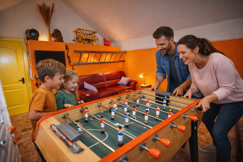 Didier passionné de construction original à réaliser la reproduction de la Baraque de nos grands-parents ! Bardages de bois, tomettes, et verrière ses matières l’ont guidé à l’agencement et à la décoration de notre Cabane la Remise un petit clin d’œil aux années 50 ! Une partie de baby-foot où laisser vous bercer par les suspensions de la 2CV Camionnette (idéal pour un enfant), tous pour passer un moment d’ÉVASION….